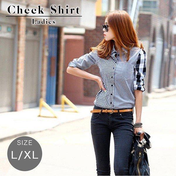 シャツ ブラウス レディース 長袖 チェックシャツ レディースシャツ チェック柄 ギンガムチェック 大人カジュアル モノトーン 秋 冬 重ね着 ボタン Eight Ko E 0 Il Shop 通販 Yahoo ショッピング